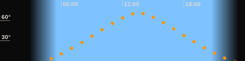 | Höchster Stand (Kulmination) | 13:33 Uhr (h = 70,6°) |