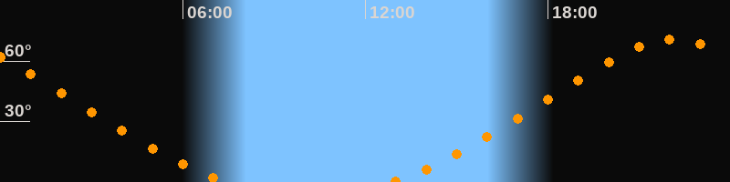 | Höchster Stand (Kulmination) | 22:08 Uhr (h = 70,6°) |
