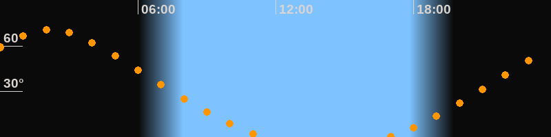 | Aufgang | 16:50 Uhr im Nordosten (αAz = 33,4°) |
