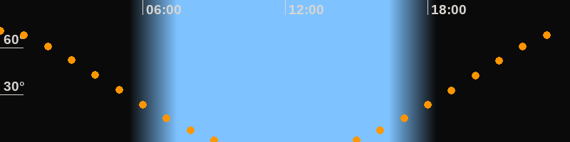 | Höchster Stand (Kulmination) | 23:59 Uhr (h = 70,6°) |