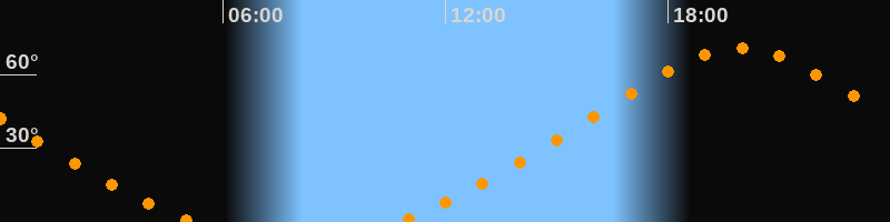 | Höchster Stand (Kulmination) | 19:56 Uhr (h = 70,6°) |
