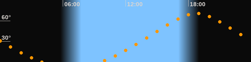 Höchster Stand (Kulmination)18:45 Uhr (h = 70,6°)