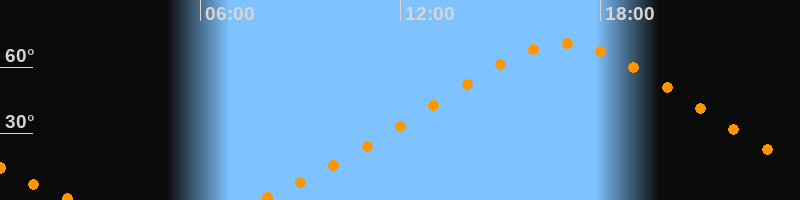 | Höchster Stand (Kulmination) | 16:55 Uhr (h = 70,6°) |