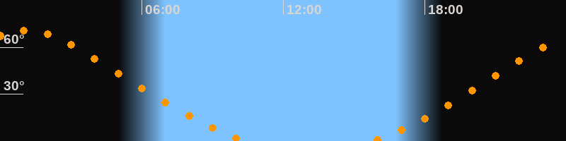 | Aufgang | 15:45 Uhr im Nordosten (αAz = 33,4°) |