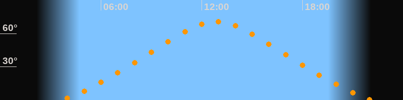 | Höchster Stand (Kulmination) | 12:53 Uhr (h = 70,6°) |