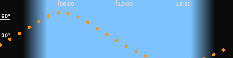 | Höchster Stand (Kulmination) | 06:23 Uhr (h = 70,6°) |