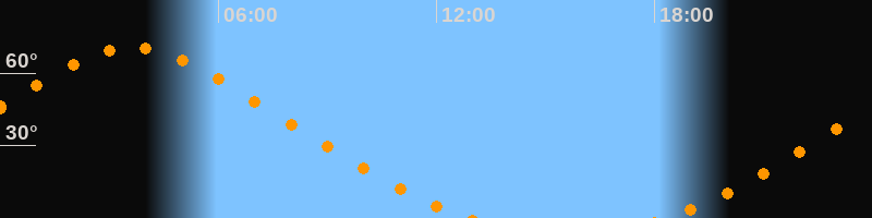 | Aufgang | 18:17 Uhr im Nordosten (αAz = 33,4°) |