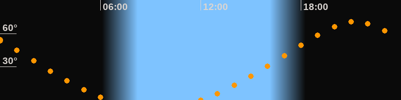 | Höchster Stand (Kulmination) | 21:13 Uhr (h = 70,6°) |