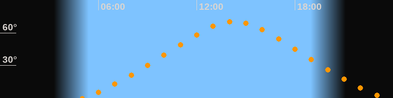 | Höchster Stand (Kulmination) | 14:16 Uhr (h = 70,6°) |