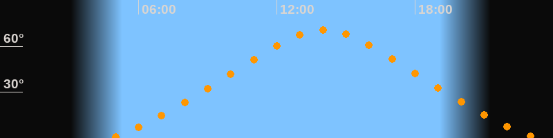 | Höchster Stand (Kulmination) | 14:01 Uhr (h = 70,6°) |