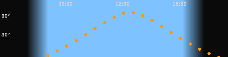| Höchster Stand (Kulmination) | 13:41 Uhr (h = 70,6°) |