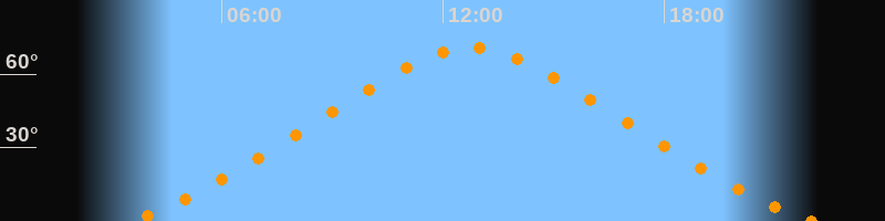 | Höchster Stand (Kulmination) | 12:46 Uhr (h = 70,6°) |