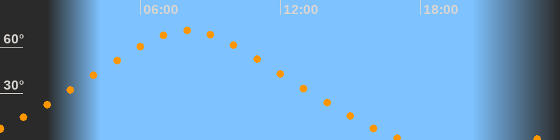 | Höchster Stand (Kulmination) | 08:03 Uhr (h = 70,6°) |