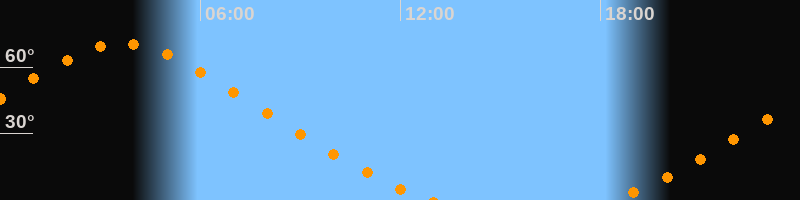 | Aufgang | 18:18 Uhr im Nordosten (αAz = 33,4°) |