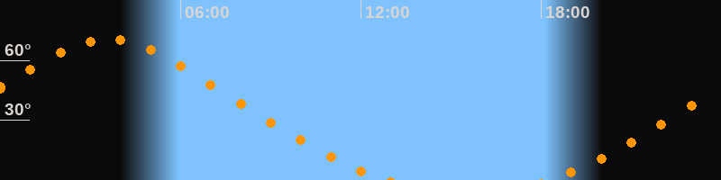| Untergang | 12:53 Uhr im Nordwesten (αAz = 326,6°) |