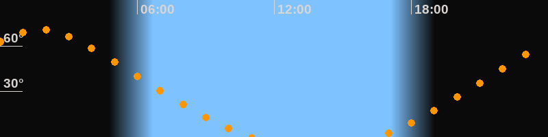 | Aufgang | 16:24 Uhr im Nordosten (αAz = 33,4°) |