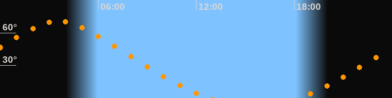 | Aufgang | 18:12 Uhr im Nordosten (αAz = 33,4°) |