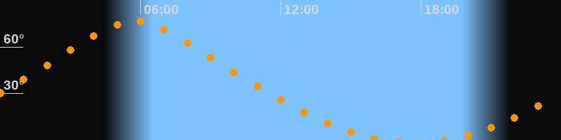 | Höchster Stand (Kulmination) | 05:45 Uhr (h = 76,7°) |