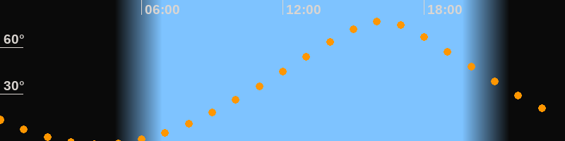 | Höchster Stand (Kulmination) | 16:10 Uhr (h = 76,7°) |