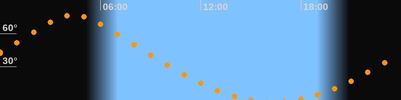 | Aufgang | 17:30 Uhr im Norden (αAz = 13,6°) |