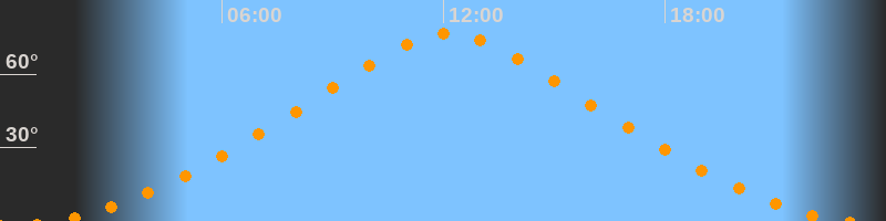 | Höchster Stand (Kulmination) | 12:08 Uhr (h = 76,7°) |