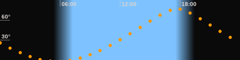 | Höchster Stand (Kulmination) | 17:42 Uhr (h = 76,7°) |