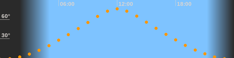 | Höchster Stand (Kulmination) | 12:01 Uhr (h = 76,7°) |