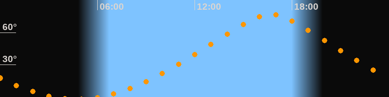 | Höchster Stand (Kulmination) | 16:41 Uhr (h = 76,7°) |