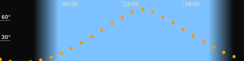 | Höchster Stand (Kulmination) | 14:05 Uhr (h = 76,7°) |