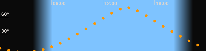 | Höchster Stand (Kulmination) | 14:45 Uhr (h = 76,7°) |