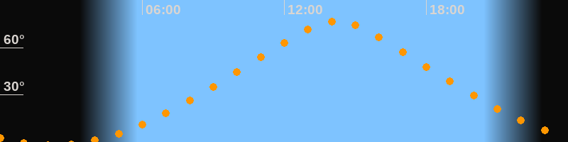 | Höchster Stand (Kulmination) | 14:11 Uhr (h = 76,7°) |