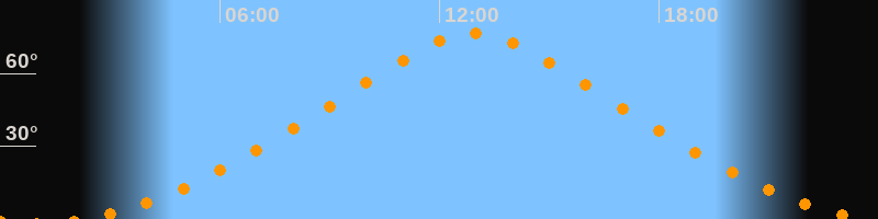 | Höchster Stand (Kulmination) | 12:57 Uhr (h = 76,7°) |