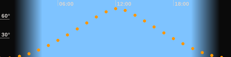 | Höchster Stand (Kulmination) | 12:10 Uhr (h = 76,7°) |