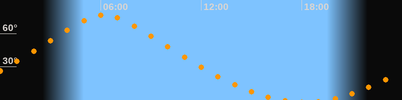 | Höchster Stand (Kulmination) | 06:12 Uhr (h = 76,7°) |
