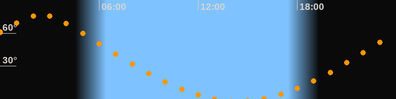 | Aufgang | 15:34 Uhr im Norden (αAz = 13,6°) |