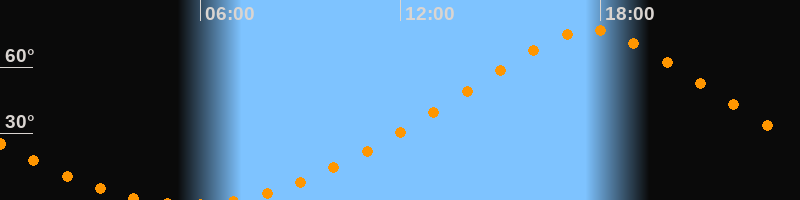 | Höchster Stand (Kulmination) | 17:41 Uhr (h = 76,7°) |