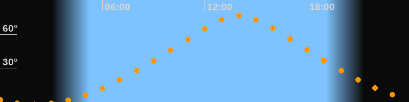 | Höchster Stand (Kulmination) | 14:01 Uhr (h = 76,7°) |
