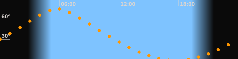 | Höchster Stand (Kulmination) | 05:45 Uhr (h = 76,7°) |