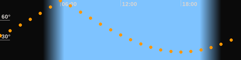 | Höchster Stand (Kulmination) | 06:05 Uhr (h = 89,3°) |