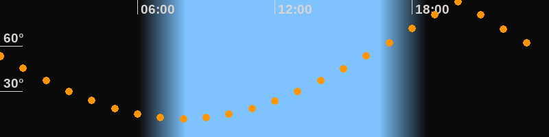 | Höchster Stand (Kulmination) | 19:58 Uhr (h = 89,3°) |