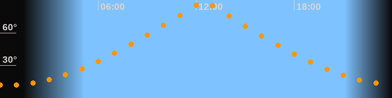 | Höchster Stand (Kulmination) | 12:27 Uhr (h = 89,3°) |