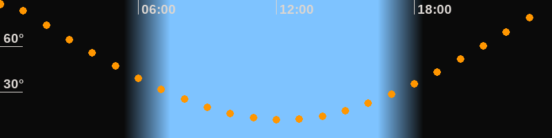 | Höchster Stand (Kulmination) | 00:12 Uhr (h = 89,3°) |