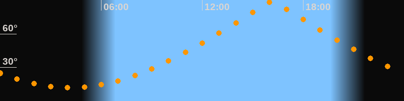 | Höchster Stand (Kulmination) | 16:09 Uhr (h = 89,3°) |