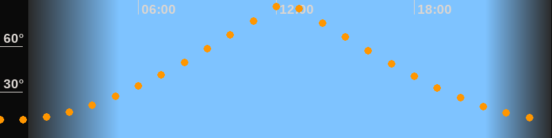| Höchster Stand (Kulmination) | 12:25 Uhr (h = 89,3°) |
