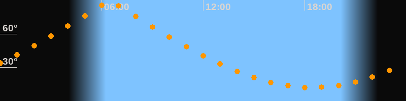 | Höchster Stand (Kulmination) | 06:27 Uhr (h = 89,3°) |