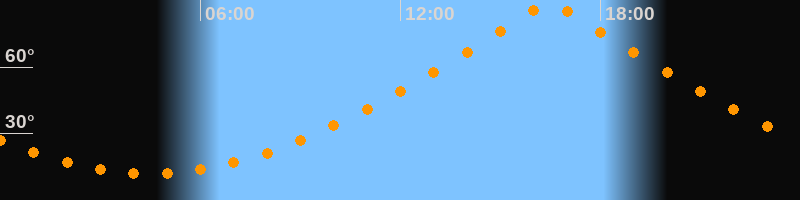 | Höchster Stand (Kulmination) | 16:29 Uhr (h = 89,3°) |