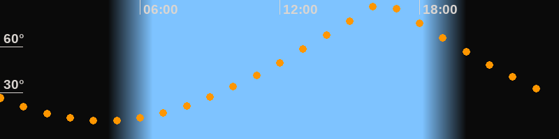 | Höchster Stand (Kulmination) | 16:25 Uhr (h = 89,3°) |