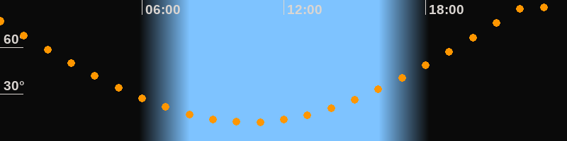 | Höchster Stand (Kulmination) | 22:32 Uhr (h = 89,3°) |