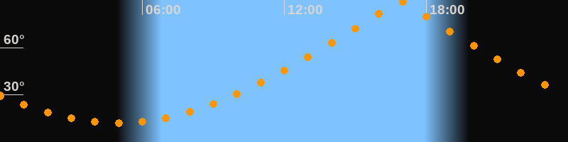 | Höchster Stand (Kulmination) | 16:54 Uhr (h = 89,3°) |