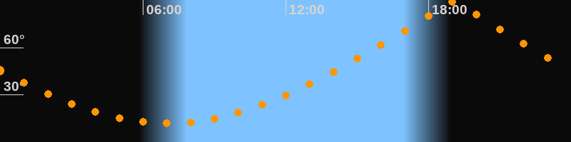 | Höchster Stand (Kulmination) | 19:02 Uhr (h = 89,3°) |